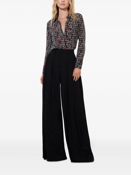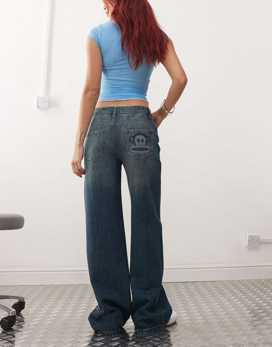 Wide Leg Denim Jeans With Diamante Logo And Back Pocket Detail