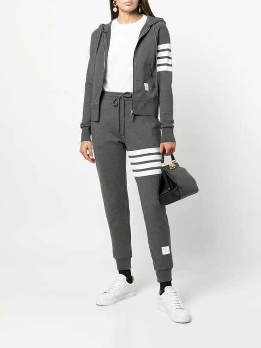 4-Bar Striped Cotton Hoodie