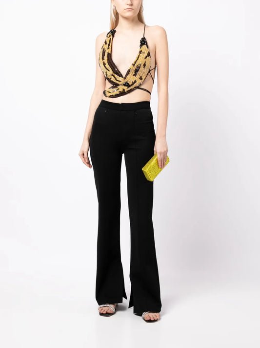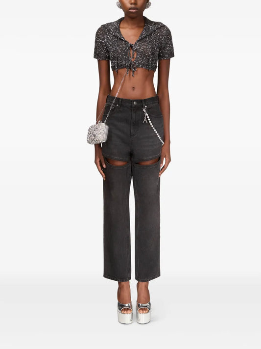 AREA is a New York-based fashion brand founded in 2014 by designers Beckett Fogg and Piotrek Panszczyk. Known for its avant-garde approach, the label specializes in high-end women's ready-to-wear clothing, accessories, and couture pieces. AREA gained recognition for its use of crystals and bold embellishments, as seen in designs worn by celebrities like Simone Biles at the Met Gala in 2021. The brand's collections often feature structural silhouettes and innovative textile treatments, appealing to consumers seeking distinctive, luxury fashion. Positioned in the premium market segment, AREA attracts a clientele interested in unique, statement-making designer apparel.