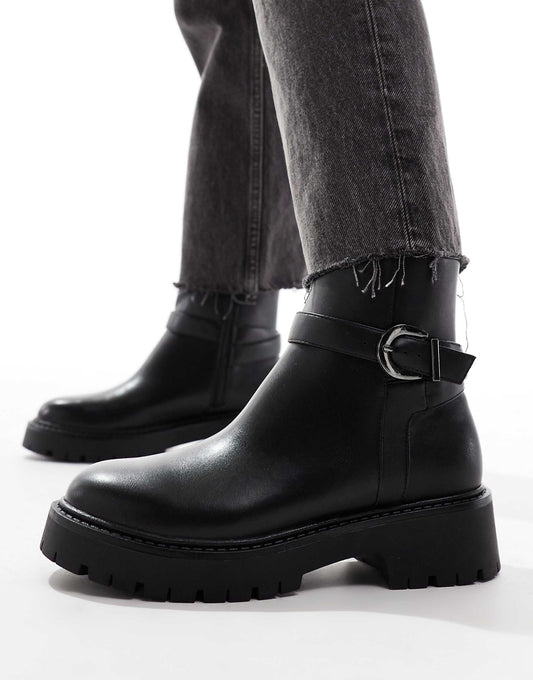 Billie Wide Fit Chunky Ankle Boots With Buckle