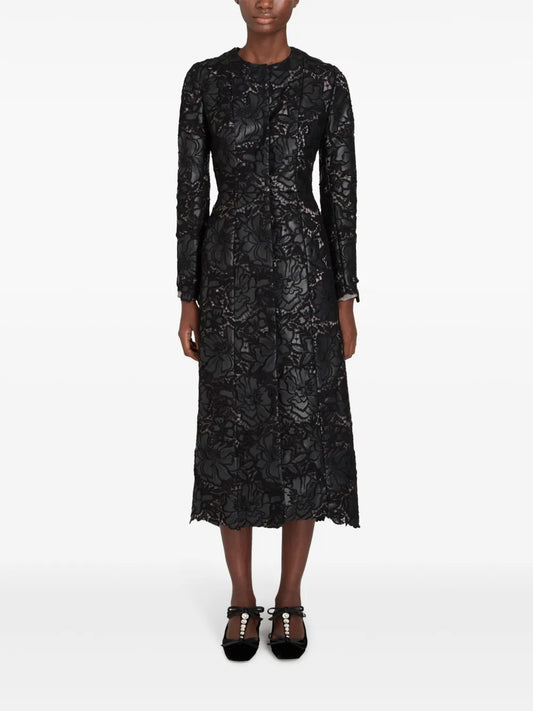 Embroidered-Design Single-Breasted Coat