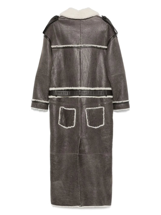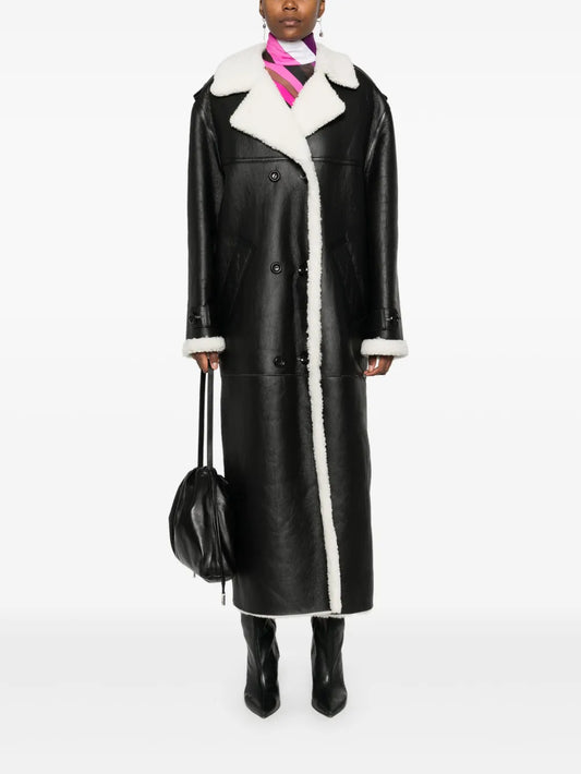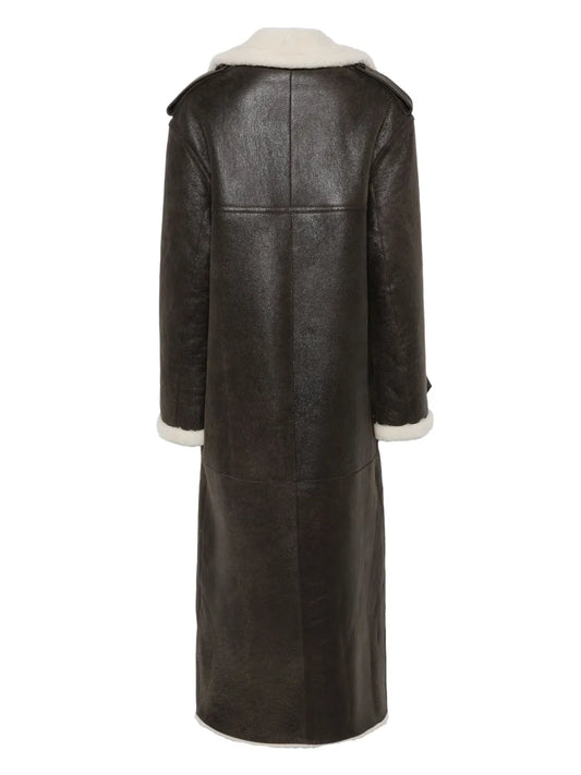 Monogram-Embossed Long Shearling Coat