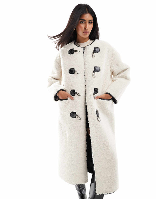 Faux Shearling Toggle Fastening Coat