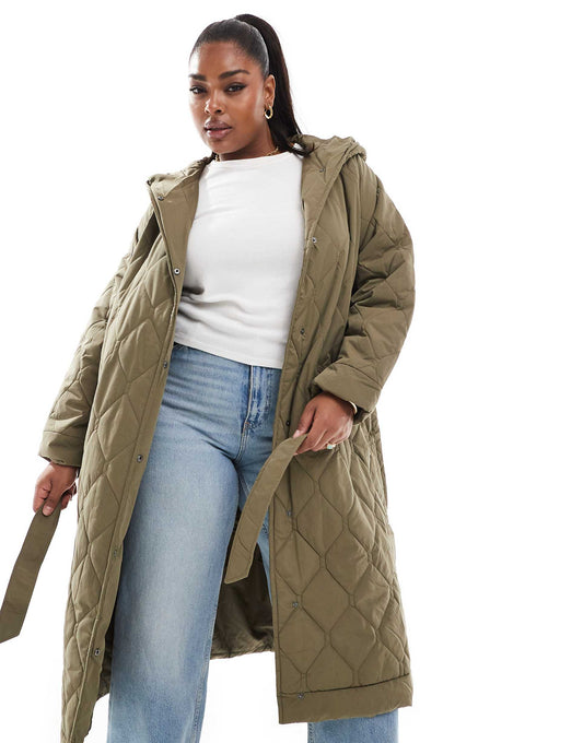 Curve Longline Quilted Coat With Tie Belt