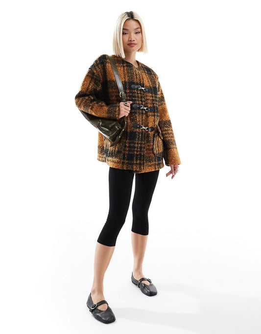 Boucle Toggle Detail Checked Coat