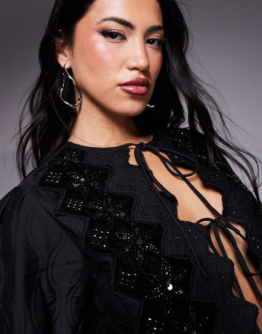 Velvet Floral Embellished Housecoat