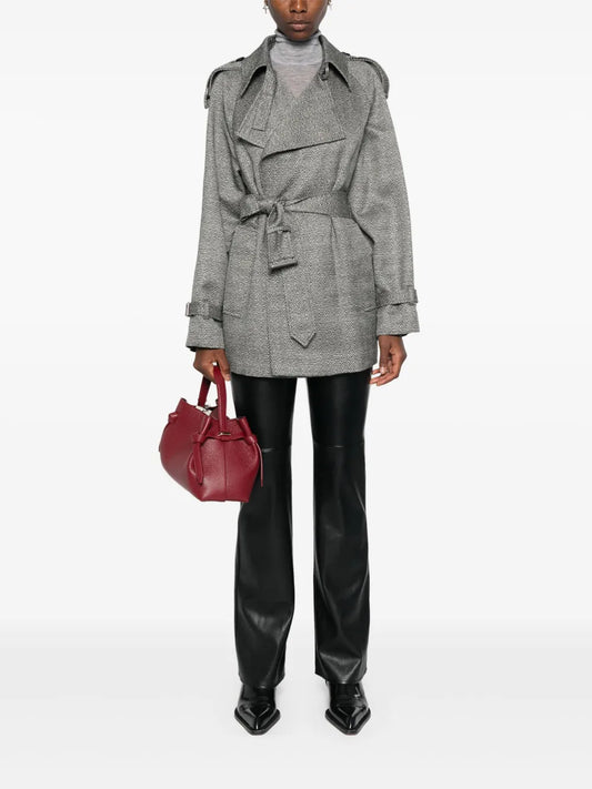 Chevron-Jacquard Belted Coat