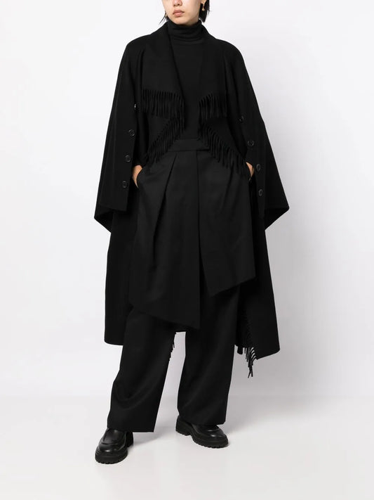 Double-Breasted Fringe-Detail Wool Coat