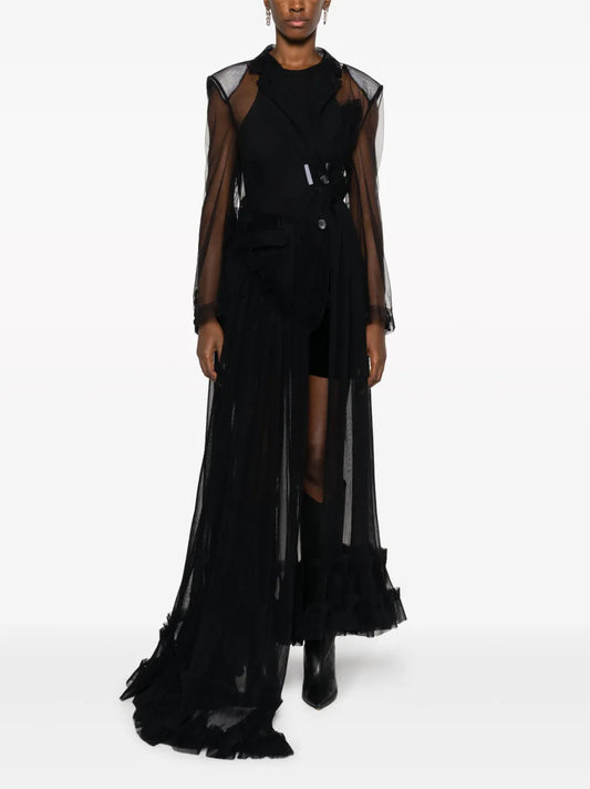 Ruffle-Detailing Sheer Coat