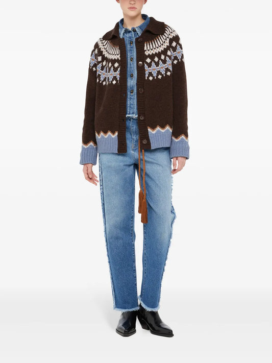 Fair Isle Intarsia Knit Wool Cardi Coat