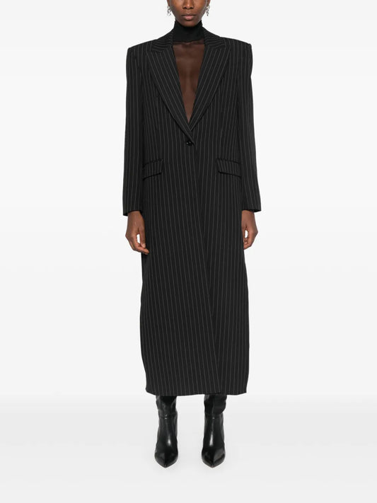 Pinstripe Flannel Maxi Coat