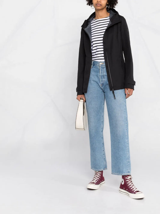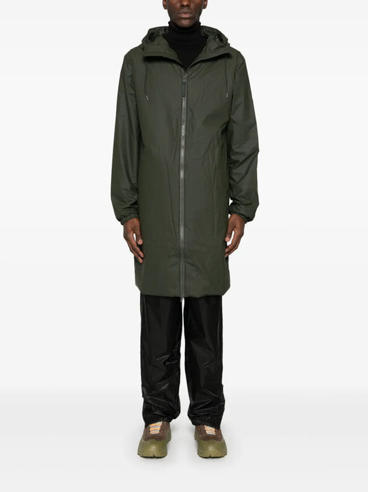 Logo-Patch Drawstring-Hood Raincoat