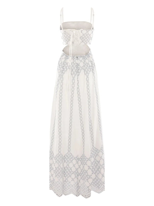 Embroidered Split-Neck Silk Dress