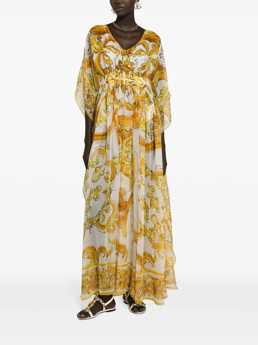 Majolica-Print Chiffon Dress