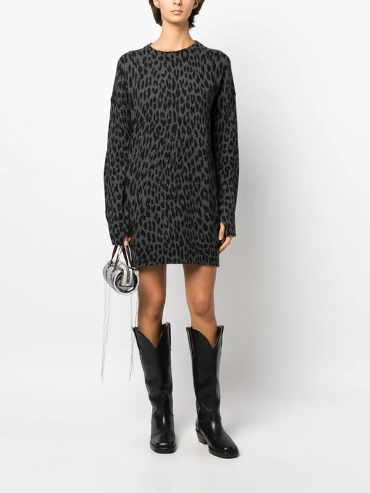 Leopard-Print Cashmere Dress
