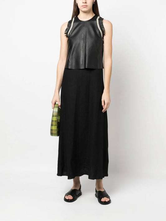 Leather-Top Long Dress