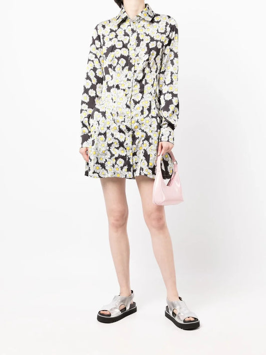 Daisy-Print Pleated Shirt Dress