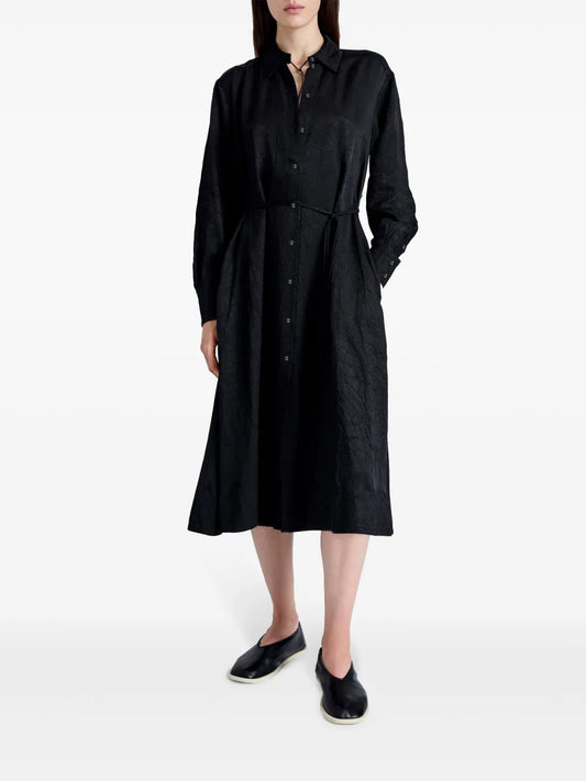 Crease-Effect Long-Sleeve Shirt Dress