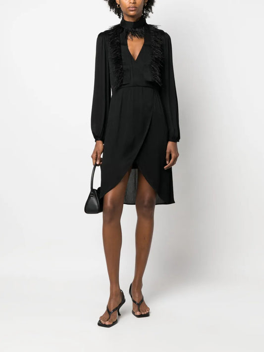 Feather-Trim Long-Sleeve Dress
