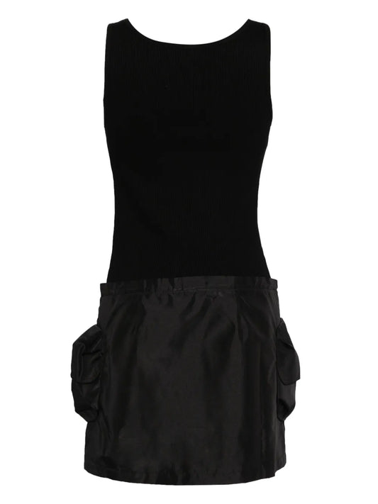 Contrasting-Fabrics Sleeveless Minidress