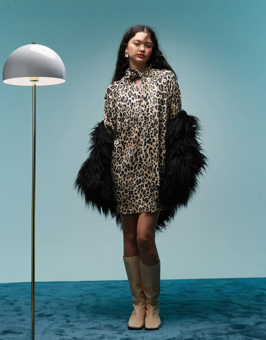Tie Neck Mini Smock Dress