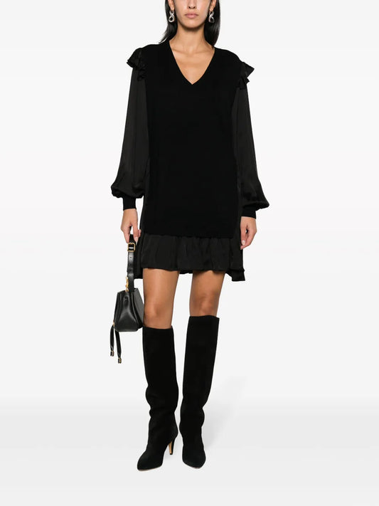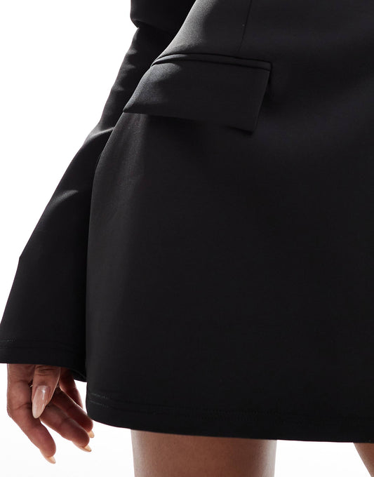 Premium Exclusive Structured Long Sleeve Pocket Detail Mini A-Line Dress