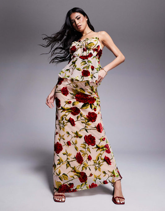 London Tie Bust Detail Cami Top And Maxi Skirt Co-Ord