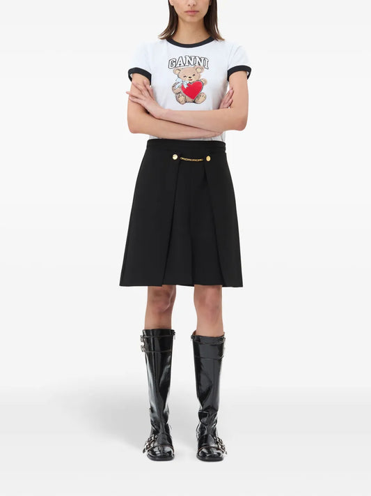 Ganni is a Danish fashion brand founded in 2000 and later expanded under the direction of husband-and-wife duo Ditte and Nicolaj Reffstrup. The brand is known for its contemporary womenswear, featuring playful prints, bold colors, and relaxed silhouettes. Ganni offers dresses, knitwear, outerwear, footwear, and accessories, blending Scandinavian simplicity with statement designs. Positioned in the premium market, it caters to a fashion-conscious audience seeking trend-driven yet wearable pieces. Ganni's collections are available through its own stores, online platforms, and high-end retailers worldwide.