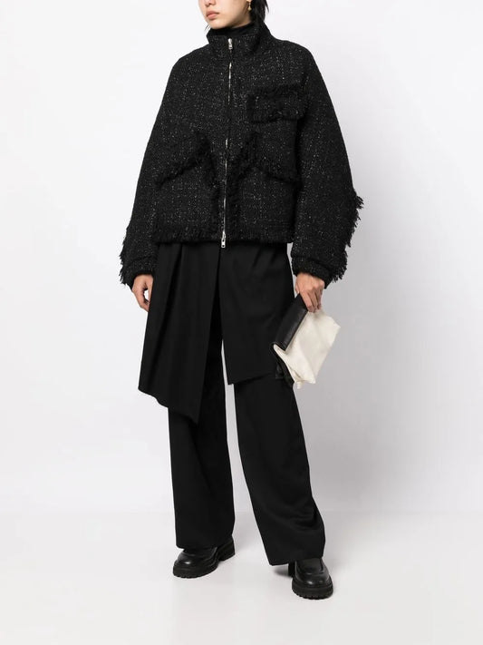 Stand-Collar Tweed Bomber Jacket