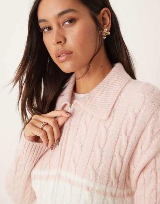 Cable Knit Zip Up Jacket