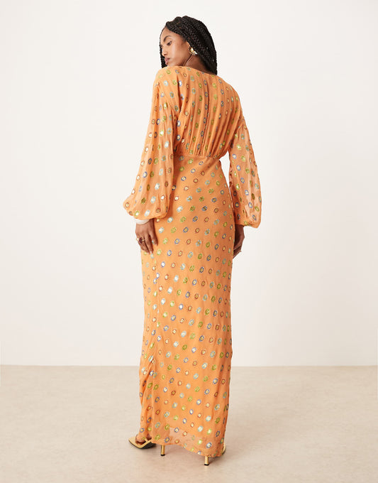 Metallic Gold Spot Midaxi Dress