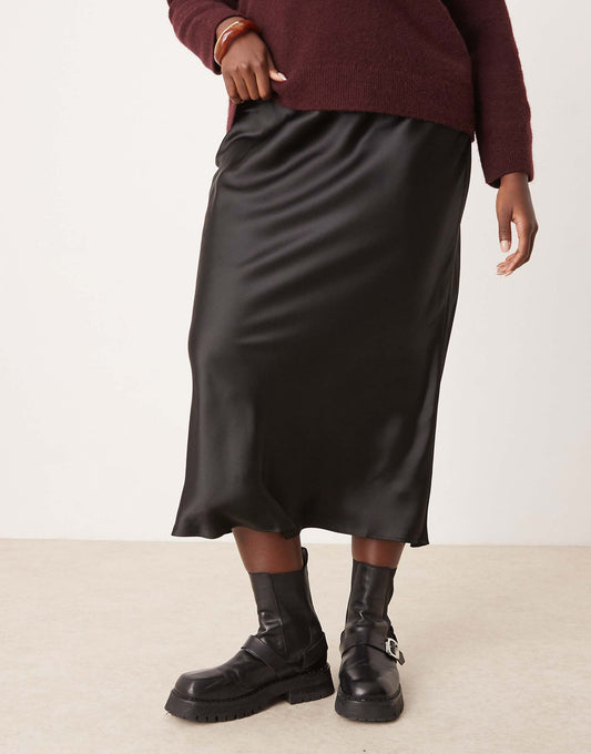 Curve Satin Bias Midi Skirt