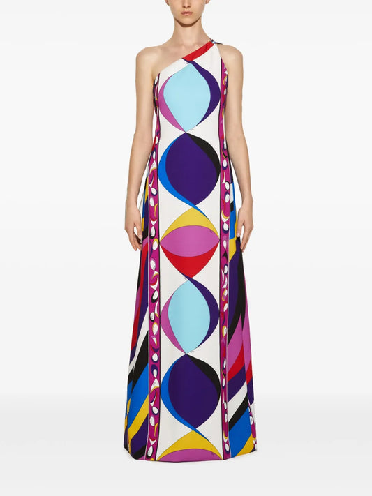 Pesci-Print One-Shoulder Dress