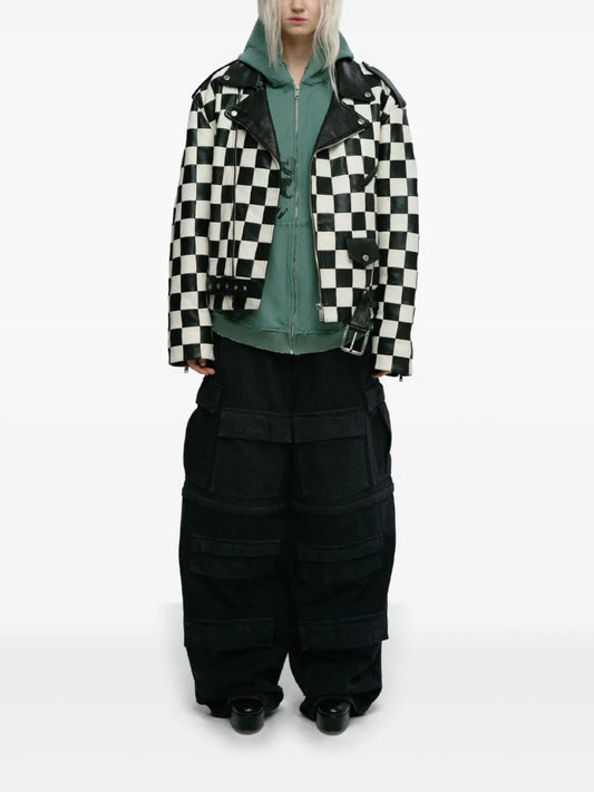 Check-Pattern Biker Jacket