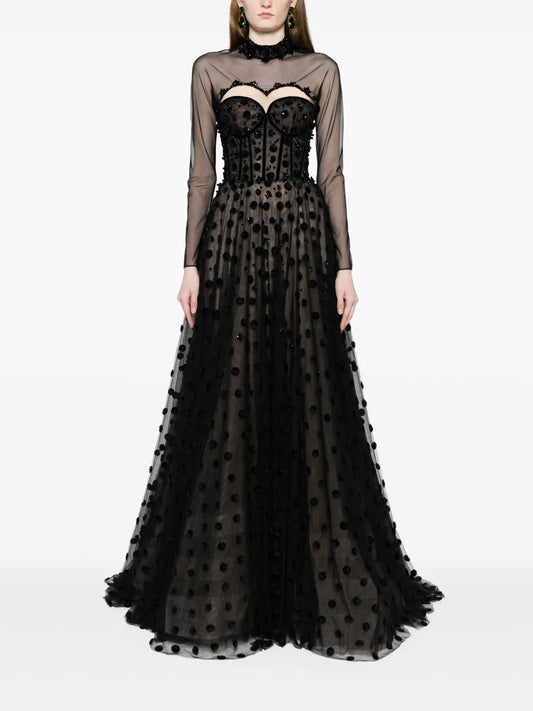 Polka Dot Beaded Tulle Gown