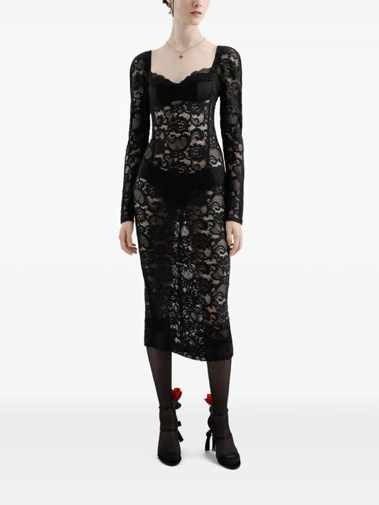 Floral-Lace Midi Dress