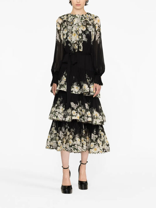 Coaster Floral-Print Tiered Midi Dress