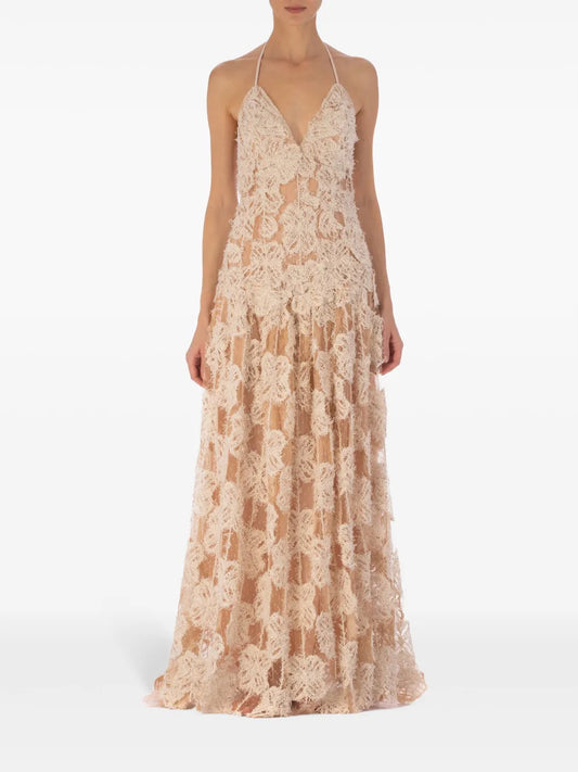 Danae Floral-Appliqué Gown
