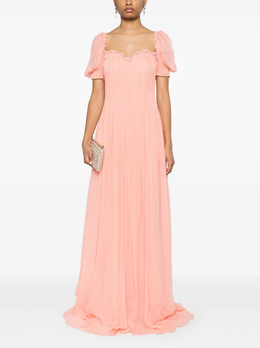 Pleated Silk Maxi Dress