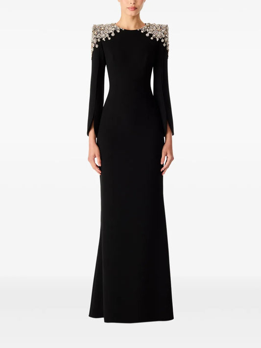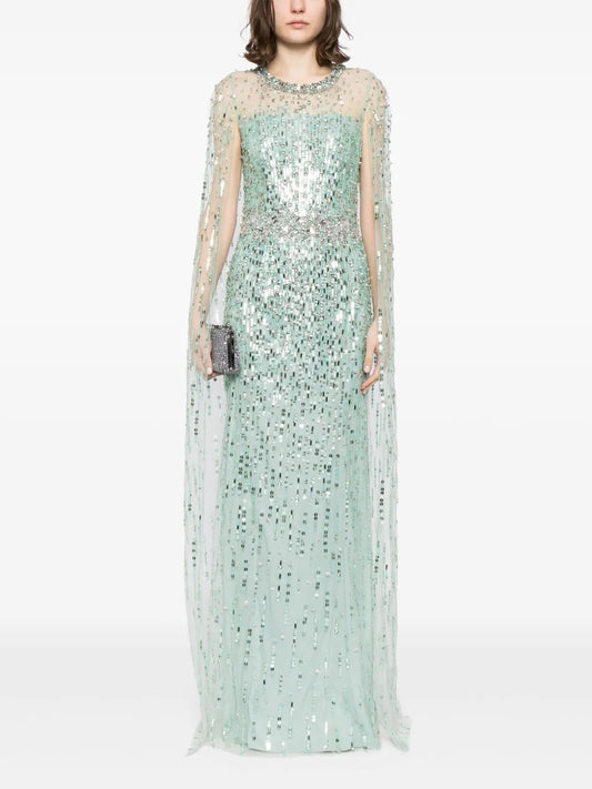 Lux Crystal-Embellished Cape Gown