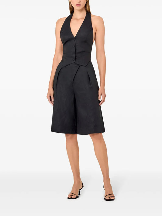 Imani Overlapped Linen Bermuda Shorts