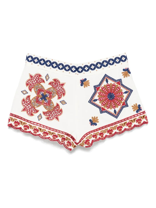 Embroidered-Design Shorts
