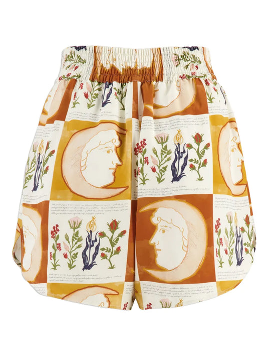 Silk Graphic-Print Shorts