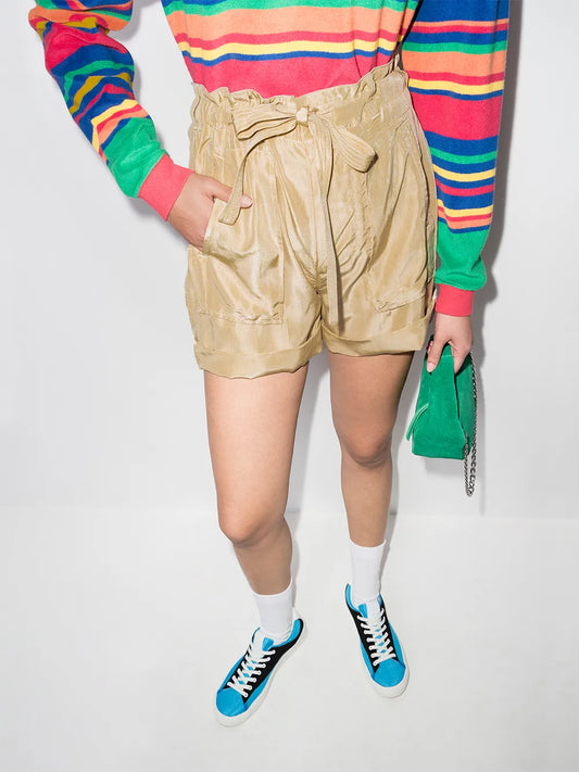 Paperbag-Waist Silk Shorts
