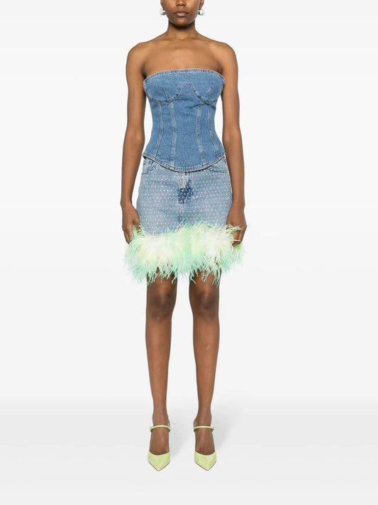 Rhinestone-Embellished Denim Skirt
