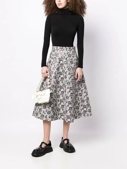 Flocked-Floral Detail Skirt