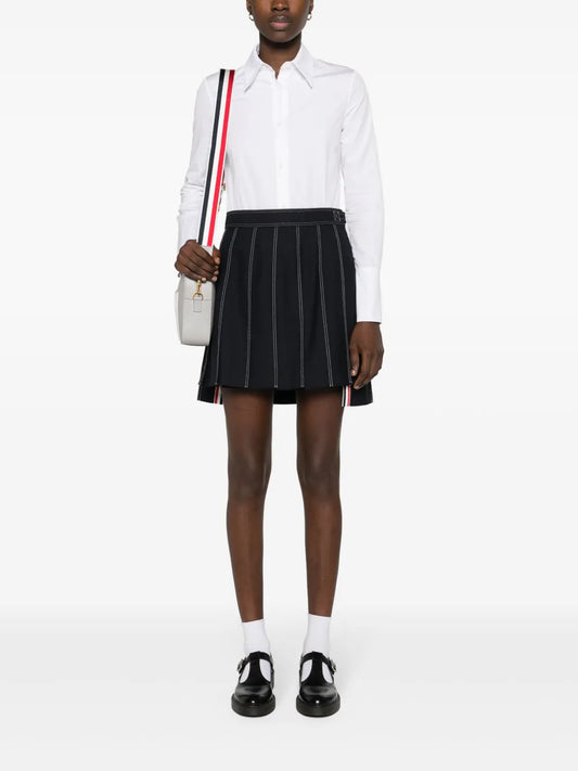 Striped Pleated Wool Miniskirt