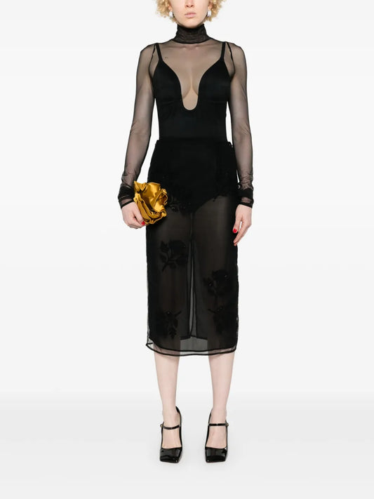 Rose-Appliqué Skirt