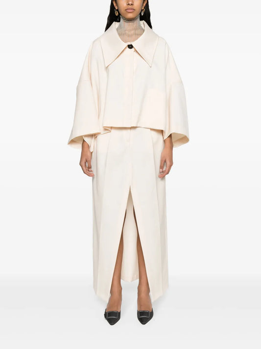 High-Waist Gabardine Long Skirt