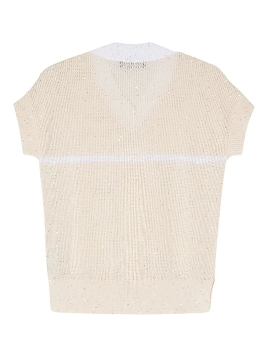 Sequin-Embellished Knitted T-Shirt